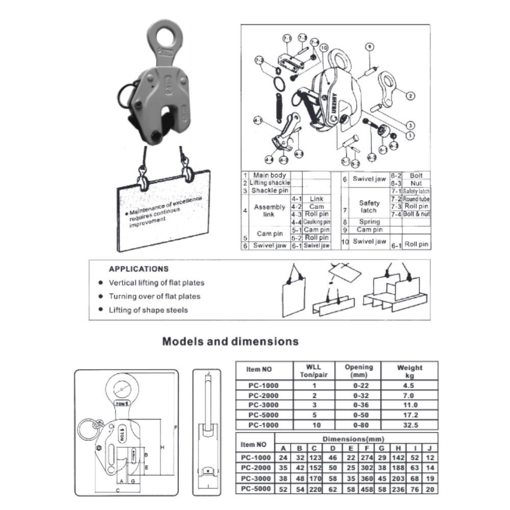 - The TOYO Vertical Lifting Clamp is engineered for the safe and efficient vertical lifting and handling of steel plates and structural materials